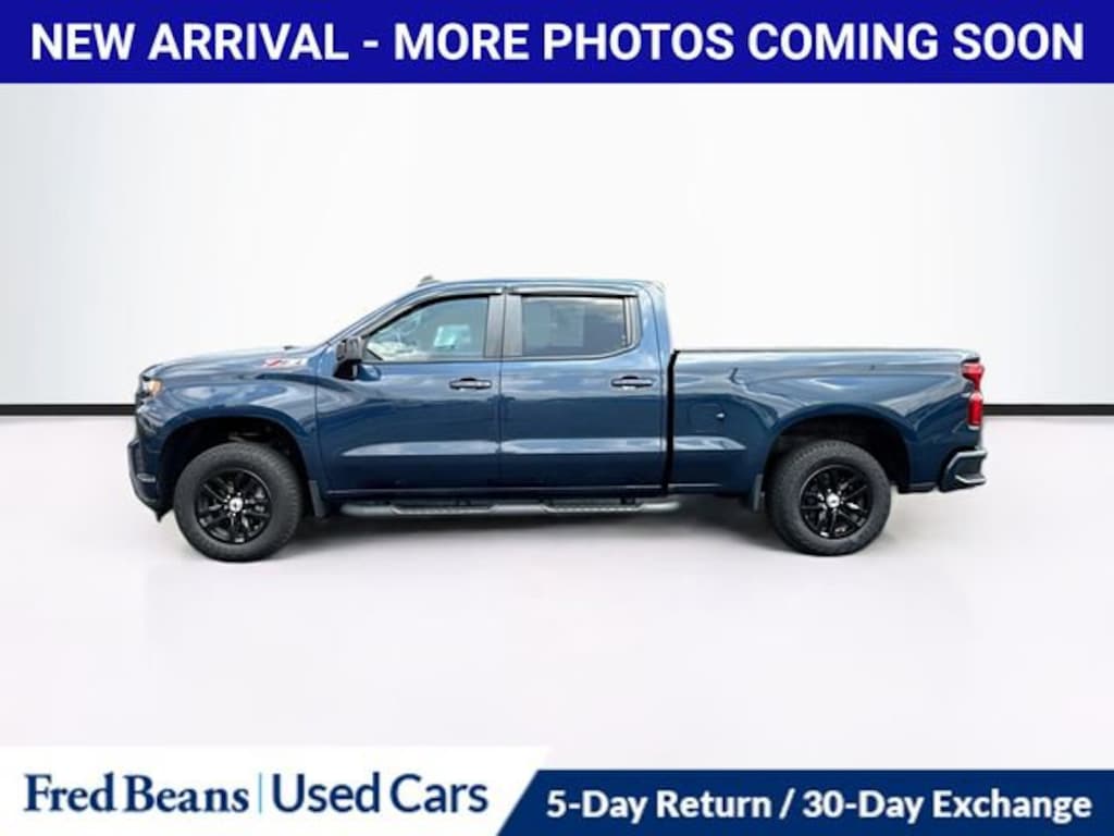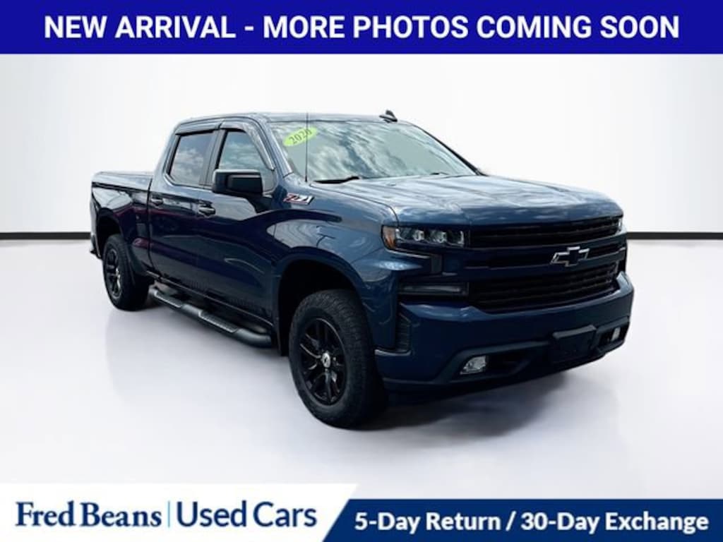 Clean CARFAX.Recent Arrival! 2020 Chevrolet Silverado 1500 RST EcoTec3 5.3L V8 8-Speed Automatic 4WD 4D Crew Cab Northsky Blue Metallic Chevrolet Certified Pre-Owned Certified, 8-Speed Automatic, 4WD, Black Cloth, 10-Way Power Driver Seat w/Lumbar, 12-Volt Rear Auxiliary Power Outlet, 120-Volt Bed Mounted Power Outlet, 120-Volt Instrument Panel Power Outlet, 170 Amps Alternator, 2 USB Ports, 2 USB Ports (First Row), 220 Amps Alternator, 3.23 Rear Axle Ratio, 4-Way Manual Driver Seat Adjuster, 4-Wheel Disc Brakes, 4.2 Diagonal Color Display Driver Info Center, 40/20/40 Front Split-Bench Seat, 4G LTE Wi-Fi Hot Spot Capable, 6 Speakers, 6-Speaker Audio System, ABS brakes, Air Conditioning, All-Star Edition, All-Weather Floor Liner (LPO) (AAK), Alloy wheels, Apple CarPlay/Android Auto, Auxiliary External Transmission Oil Cooler, Bed Protection Package, Bluetooth® For Phone, Body Color Grille, Brake assist, Bumpers: body-color, Chevrolet Connected Access Capable, Chevytec Spray-On Black Bedliner, Cloth Rear Seat w/Storage Package, Cloth Seat Trim, Color-Keyed Carpeting Floor Covering, Compass, Convenience Package, Convenience Package II, Convenience Package w/Buckets Seats, Deep-Tinted Glass, Delay-off headlights, Driver door bin, Driver vanity mirror, Dual Exhaust w/Polished Outlets, Dual front impact airbags, Dual front side impact airbags, Dual-Zone Automatic Climate Control, Electric Rear-Window Defogger, Electrical Lock Control Steering Column, Electronic Stability Control, External Engine Oil Cooler, Floor Mounted Center Console, Front anti-roll bar, Front Bucket Seats, Front Center Armrest w/Storage, Front fog lights, Front Frame-Mounted Black Recovery Hooks, Front LED Fog Lamps, Front License Plate Kit, Front reading lights, Front Rubberized Vinyl Floor Mats, Front wheel independent suspension, Fully automatic headlights, HD Radio, HD Rear Vision Camera, Heated door mirrors, Heated Driver & Front Outboard Passenger Seats, Heated Steering Wheel, Heavy Duty Suspension, Heavy-Duty Rear Locking Differential, High Capacity Air Filter, High Gloss Black Mirror Caps, Hill Descent Control, Hitch Guidance, Illuminated entry, Integrated Trailer Brake Controller, Keyless Open & Start, Leather Wrapped Steering Wheel, LED Cargo Area Lighting, Low tire pressure warning, Manual Tilt-Wheel Steering Column, Manual Tilt/Telescoping Steering Column, Occupant sensing airbag, Off-Road Suspension, OnStar & Chevrolet Connected Services Capable, Outside temperature display, Overhead airbag, Overhead console, Panic alarm, Passenger door bin, Passenger vanity mirror, Power Door Locks, Power door mirrors, Power Front Windows w/Driver Express Up/Down, Power Front Windows w/Passenger Express Down, Power Rear Windows w/Express Down, Power Sliding Rear Window w/Rear Defogger, Power steering, Power windows, Preferred Equipment Group 1SP, Premium Bose 7-Speaker Sound System, Radio data system, Radio: Chevrolet Infotainment 3 Plus System, Radio: Chevrolet Infotainment 3 System, Rear 60/40 Folding Bench Seat (Folds Up), Rear Dual USB Charging-Only Ports, Rear reading lights, Rear Rubberized-Vinyl Floor Mats, Rear step bumper, Rear Vision Camera, Rear Wheelhouse Liners, Rear window defroster, Remote keyless entry, Remote Vehicle Starter System, Security system, Single-Zone Manual/Semi-Automatic Air Conditioning, SiriusXM w/360L, Speed control, Speed-sensing steering, Split folding rear seat, Steering Wheel Audio Controls, Steering wheel mounted audio controls, Steering Wheel Mounted Electronic Cruise Control, Tachometer, Theft Deterrent System (Unauthorized Entry), Tilt steering wheel, Traction control, Trailering Package, Trip computer, Universal Home Remote, Urethane Steering Wheel, Variably intermittent wipers, Voltmeter, Wheels: 18 x 8.5 Bright Silver Painted Aluminum, Z71 Off-Road & Protection Package, Z71 Off-Road Package, 8-Speed Automatic, 4WD, Black Cloth.Odometer is 15017 miles below market average!Certified. Chevrolet Cer