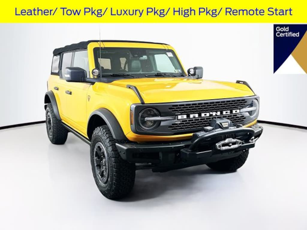 2021 Ford Bronco Badlands 2.3L EcoBoost I-4 10-Speed Automatic 4WD 4D Sport Utility Cyber Orange Metallic Tricoat Ford Gold Certified, 7 Year / 100k Powertrain Warranty, 12 Month / 12,000 Mile Comprehensive Warranty, Local Trade, 12" LCD Capacitive Touchscreen w/Swipe Capability, 2 Smart Charging USB Ports In Dashboard, 2-Door Intelligent Access w/Lock/Unlock, 360-Degree Camera, 4.46 Axle Ratio, Adaptive Cruise Control, Additional Sound Deadening, Ambient Footwell Lighting, Auto-Dimming Interior Rear-View Mirror, Connected Built-In Navigation, Dr & Pass Illuminated Sliding Visor Vanity Mirrors, Dual-Zone Electronic Automatic Temperature Control, Enhanced Voice Recognition, Equipment Group 334A Lux Package, Evasive Steering Assist, Forward Sensing System, Front Row Heated Seats, Heated door mirrors, Heated Steering Wheel, Information on Demand Panel, Marine Grade Vinyl Bucket Seats, Navigation system: Connected Navigation, Power door mirrors, Power Outlet - Back Side of Center Floor Console, Power windows, Pre-Collision Assist w/Automatic Emergency Braking, Radio: B&O Sound System by Bang & Olufsen, Rear-View Camera, Remote keyless entry, Reverse Sensing System, Sideview Mirrors, SiriusXM Radio w/360L, SYNC 4, Tilt steering wheel, Towing Capability, Universal Garage Door Opener, Wheels: 17" Black High Gloss-Painted Aluminum (64W), Wireless Charging Pad.
