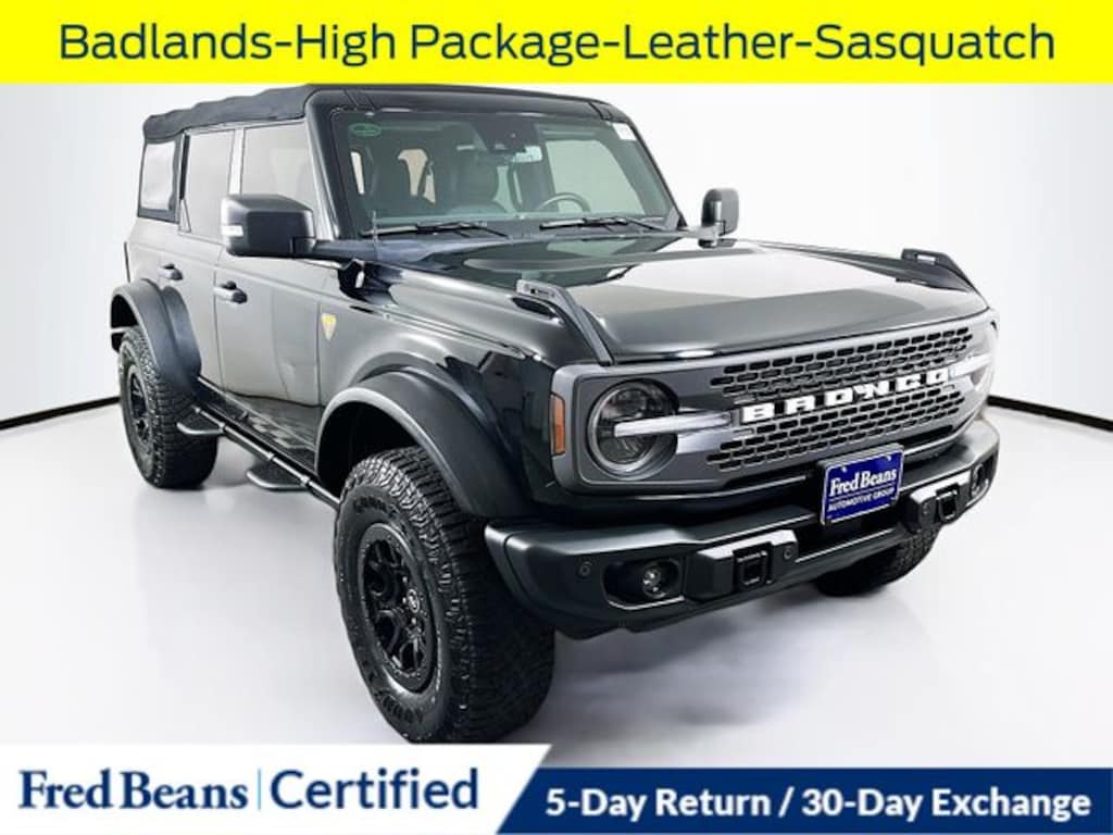2022 Ford Bronco Badlands 2.3L EcoBoost I-4 10-Speed Automatic 4WD 4D Sport Utility Shadow Black Ford Gold Certified, 7 Year / 100k Powertrain Warranty, 12 Month / 12,000 Mile Comprehensive Warranty, 12" LCD Capacitive Touchscreen w/Swipe Capability, 2 Smart Charging USB Ports In Dashboard, 2-Door Intelligent Access w/Lock/Unlock, 360-Degree Camera, 4.7 Final Drive Ratio, Adaptive Cruise Control, Additional Sound Deadening, AM/FM radio: SiriusXM with 360L, Ambient Footwell Lighting, Auto-Dimming Interior Rear-View Mirror, Connected Built-In Navigation, Dr & Pass Illuminated Sliding Visor Vanity Mirrors, Dual-Zone Electronic Automatic Temperature Control, Enhanced Voice Recognition, Equipment Group 334A Lux Package, Evasive Steering Assist, Front Parking Sensors, Front Row Heated Seats, Heated Steering Wheel, High Clearance Fender Flares, High Clearance Suspension, Information on Demand Panel, Position-Sensitive Bilstein Shock Absorbers, Power door mirrors, Power Outlet - Back Side of Center Floor Console, Power windows, Radio: B&O Sound System by Bang & Olufsen, Rear Parking Sensors, Remote keyless entry, Sasquatch Package, Sideview Mirrors, SYNC 4, Universal Garage Door Opener, Wheels: 17" Black High Gloss-Painted Aluminum, Wireless Charging Pad.