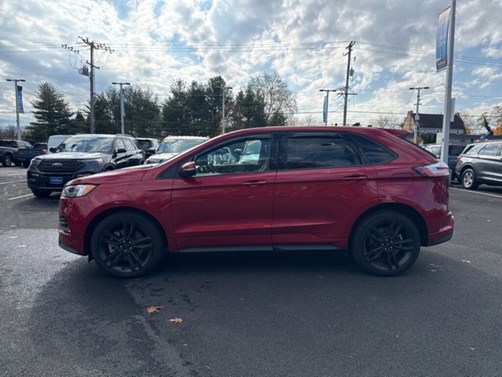Recent Arrival! 2022 Ford Edge ST 2.7L V6 EcoBoost 7-Speed Automatic AWD 4D Sport Utility Rapid Red Metallic Tinted Clearcoat Local Trade, Great Service History, 3 Month / 4,000 Mile Comprehensive Warranty, Factory Certified Vehicle, Free First Oil Change, Auto Reward Program, AWD, Wheels: 21" Premium Gloss Black-Painted Aluminum.