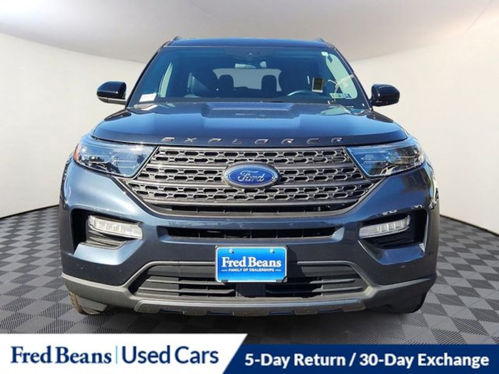 2022 Ford Explorer XLT 2.3L EcoBoost I-4 10-Speed Automatic 4WD 4D Sport Utility Stone Blue Metallic Bought & Serviced at Fred Beans, Local Trade, Great Service History, 3 Month / 4,000 Mile Comprehensive Warranty, Factory Certified Vehicle, Free First Oil Change, Auto Reward Program, 4WD.
