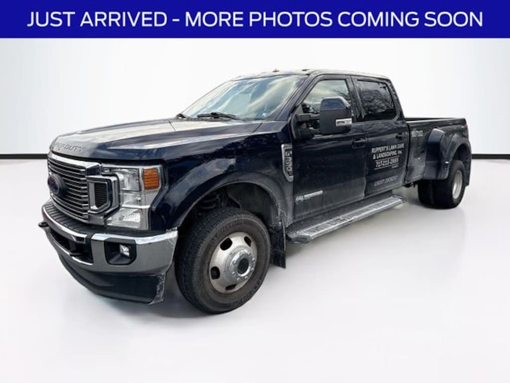 This 2022 Ford F-350SD Lariat DRW is a powerful and capable heavy-duty pickup that's ready to take on any job. With its robust 6.7L Power Stroke V8 Diesel engine, this truck delivers exceptional towing and hauling capabilities, making it the ideal choice for those with demanding workloads or recreational needs. The Lariat trim level adds a host of premium features, including heated and ventilated front seats, a premium audio system, and advanced trailering technology to make your driving experience more comfortable and convenient.