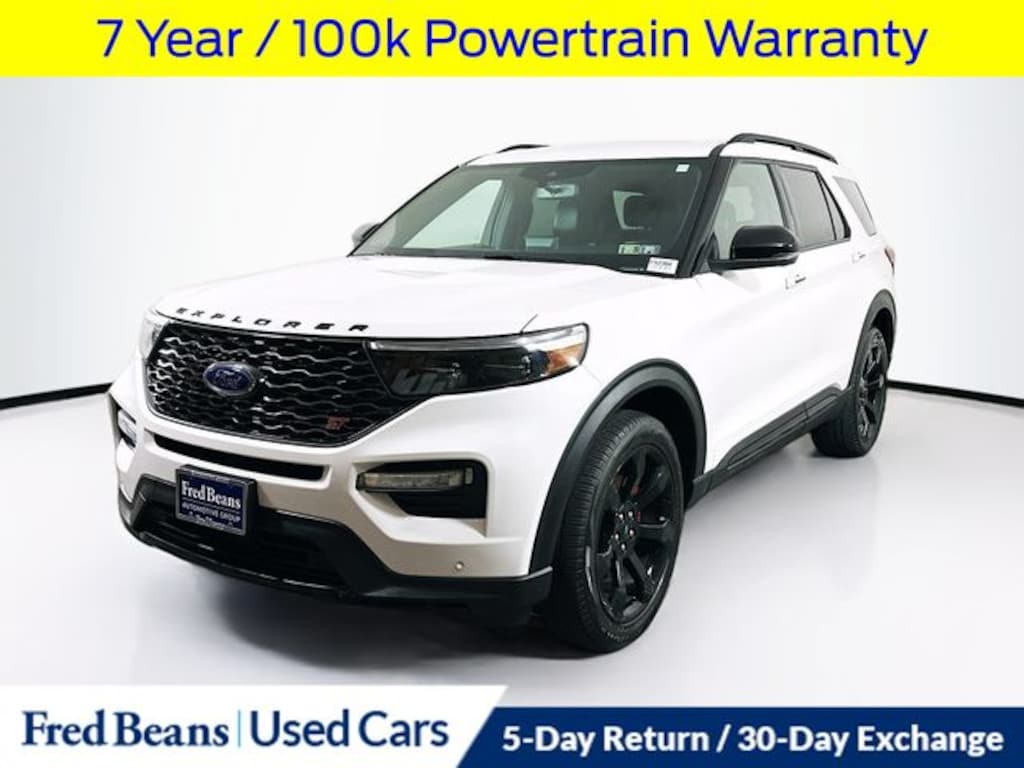 2023 Ford Explorer ST 3.0L EcoBoost V6 10-Speed Automatic 4WD 4D Sport Utility Star White Metallic Tri-Coat Ford Gold Certified, 7 Year / 100k Powertrain Warranty, 12 Month / 12,000 Mile Comprehensive Warranty, 10.1" LCD Capacitive Portrait Touchscreen, 2 Additional Speakers, AM/FM radio: SiriusXM, Automatic temperature control, Equipment Group 401A, Evasive Steering Assist, Exterior Parking Camera Rear, Ford Co-Pilot360 Assist+, Front dual zone A/C, Heated door mirrors, Heated steering wheel, Intelligent Adaptive Cruise Control, Leather Htd/Ventilated Sport Captain's Chairs, Power door mirrors, Power driver seat, Power Liftgate, Power passenger seat, Power windows, Radio: B&O Sound System by Bang & Olufsen, Rear air conditioning, Rear window defroster, Rear window wiper, Remote keyless entry, Speed Sign Recognition, ST High Package, ST Street Pack, SYNC 3 Communications & Entertainment System, SYNC 3/Apple CarPlay/Android Auto, Technology Package, Twin Panel Moonroof, Voice-Activated Touchscreen Navigation System, Wheels: 21" Aluminum.