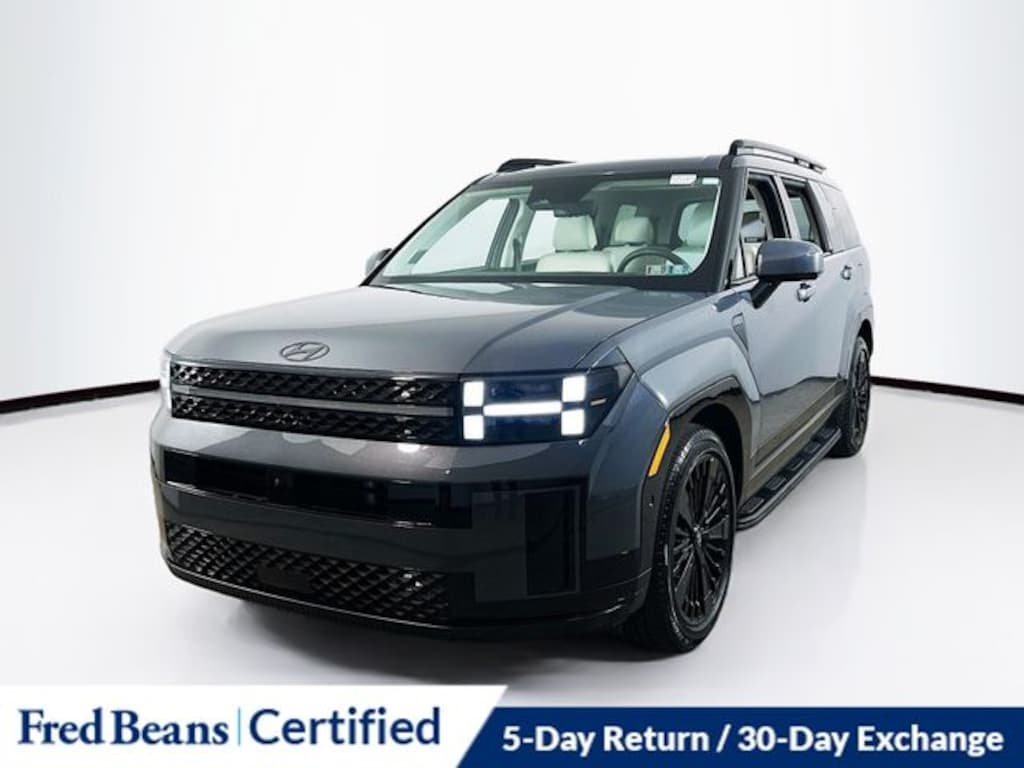 Discover the perfect balance of style, efficiency, and advanced features in this 2025 Hyundai Santa Fe Hybrid Calligraphy. Visit our showroom today to experience this exceptional SUV for yourself and explore the exceptional value it offers.