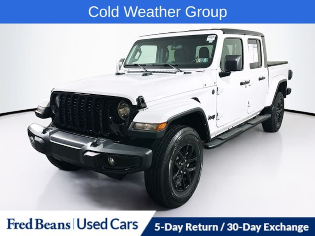 Recent Arrival! 2022 Jeep Gladiator Altitude 3.6L V6 24V VVT 8-Speed Automatic 4WD 4D Crew Cab Bright White Clearcoat Great Service History, 110 MPH Vehicle Max Speed Calibration, Apple CarPlay/Android Auto, Cold Weather Group, Convenience Group, Heated Front Seats, Heated Steering Wheel, Universal Garage Door Opener.