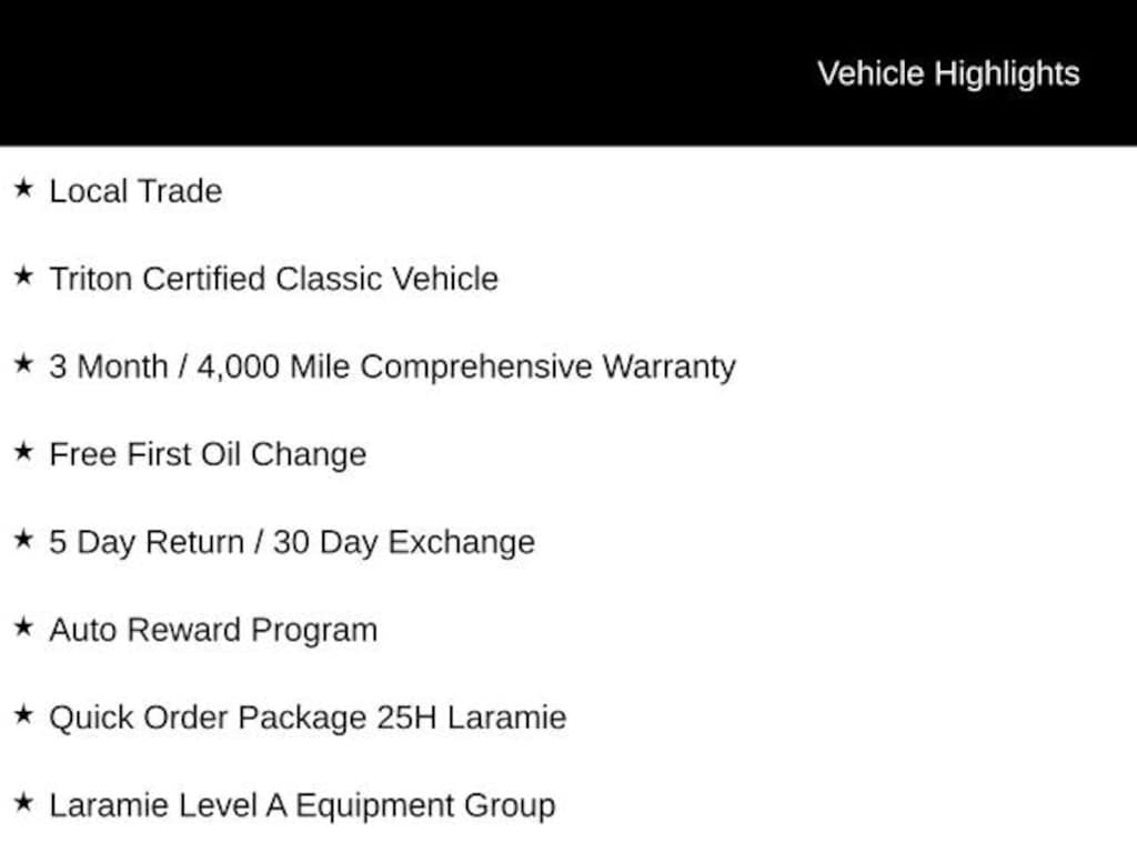 2021 Ram 1500 Laramie HEMI 5.7L V8 Multi Displacement VVT 8-Speed Automatic 4D Crew Cab Patriot Blue Pearlcoat Local Trade, Triton Certified Classic Vehicle, 3 Month / 4,000 Mile Comprehensive Warranty, Free First Oil Change, 5 Day Return / 30 Day Exchange, Auto Reward Program, 1500 Laramie, 4D Crew Cab, HEMI 5.7L V8 Multi Displacement VVT, 8-Speed Automatic, 4WD, Patriot Blue Pearlcoat, Black Leather, Auto High Beam Headlamp Control, Foam Bottle Insert (Door Trim Panel), Laramie Level A Equipment Group, ParkSense Front/Rear Park Assist w/Stop, Quick Order Package 25H Laramie, Rain Sensitive Windshield Wipers, Rear 60/40 Folding Split Recline Seat, Remote Tailgate Release, Tailgate Ajar Warning Lamp.