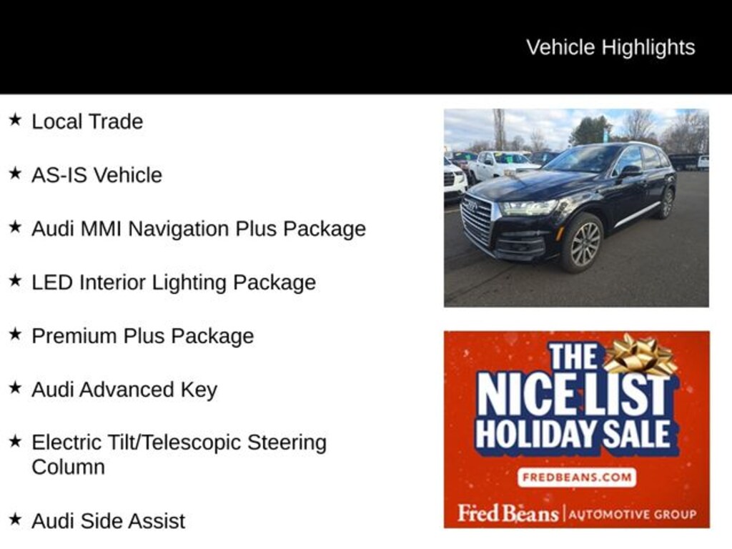Recent Arrival! 2017 Audi Q7 3.0T Premium Plus quattro 3.0L TFSI V6 DOHC 8-Speed Automatic with Tiptronic quattro 4D Sport Utility Night Black Local Trade, AS-IS Vehicle, Audi Advanced Key, Audi MMI Navigation Plus Package, Audi Side Assist, Electric Tilt/Telescopic Steering Column, Heated Auto-Dimming Power Folding Exterior Mirrors, LED Interior Lighting Package, Premium Plus Package, Stainless Steel Trunk Sill.