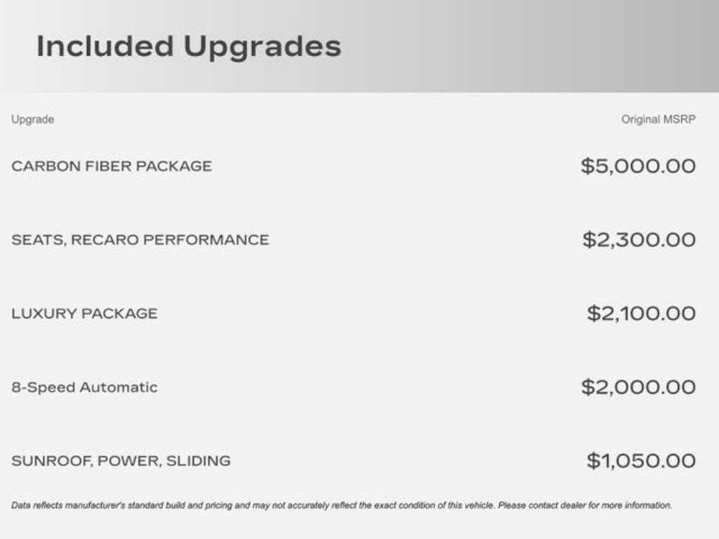 This car never disappoints. It’s chassis is the best I have ever experienced. Most so called “high end sports cars” can’t compete in the corners and straight line. It always amuses me to see a bewildered M or AMG owner’s look after the car demonstrates its superiority. The power is awesome and not even the OEM Michelin Pilot SS’s can always handle it. Carbon fiber package a must! I really can’t understand why someone who is really a true performance care enthusiast would buy one of these other overpriced imports other than for the status. If you are buying those for the name than you don’t know performance/value. The value is just incomparable. Best in class!