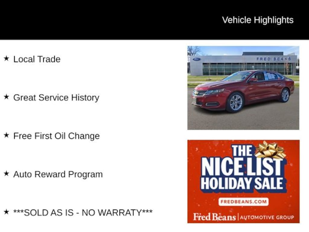 2015 Chevrolet Impala LT 1LT ECOTEC 2.5L I4 DGI DOHC 6-Speed Automatic 4D Sedan Crystal Red Tintcoat Local Trade, Great Service History, Free First Oil Change, Auto Reward Program, ***SOLD AS IS - NO WARRATY***, Impala LT 1LT, 4D Sedan, ECOTEC 2.5L I4 DGI DOHC, 6-Speed Automatic, FWD, Crystal Red Tintcoat, Jet Black/Dark Titanium Cloth. 22/31 City/Highway MPG