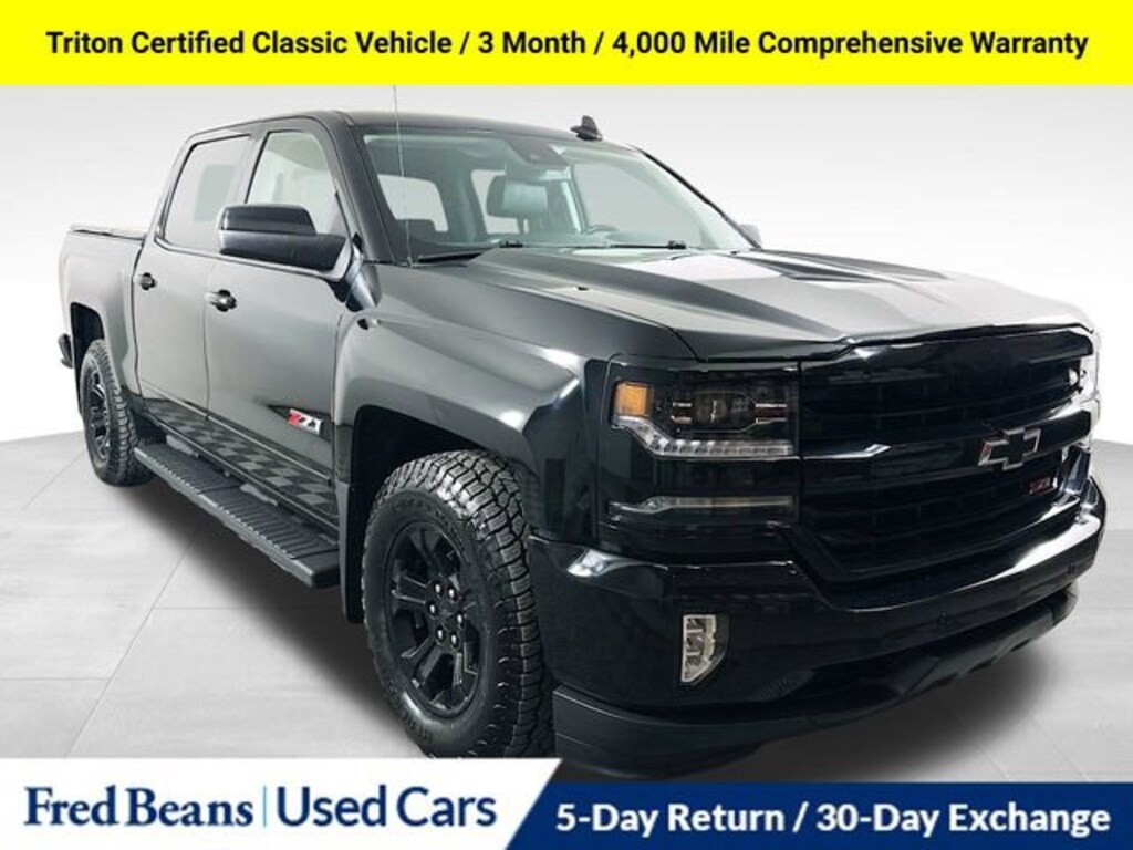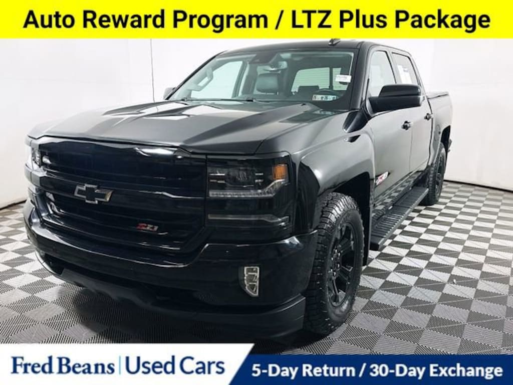 Clean CARFAX. CARFAX One-Owner.2018 Chevrolet Silverado 1500 LTZ 2LZ EcoTec3 5.3L V8 8-Speed Automatic with Overdrive 4WD 4D Crew Cab Black Triton Certified Classic Vehicle, 3 Month / 4,000 Mile Comprehensive Warranty, Free First Oil Change, 5 Day Return / 30 Day Exchange, Auto Reward Program, 8-Speed Automatic with Overdrive, 4WD, Jet Black Leather, Bose Speaker System, Leather Wrapped Heated Steering Wheel, LTZ Plus Package, Power Adjustable Pedals.Certified. Certification Program Details: Triton Certified Shield Classic 3-Month or 4,000-Mile Comprehensive Coverage ($100 deductible) 100+ Multipoint Inspection PA State Inspection & Emissions Test Oil, Lube, & Filter Service Completed 5-Day Return Policy1 30-Day Exchange Policy2 CARFAXTM Report AutoRewards Membership See salesperson for additional offers & complete details.For better peace of mind all our used vehicles have a 127-point inspection and come with a 5-day return, 30-day exchange (As-Is vehicles are excluded). Our exclusive Auto Rewards Program provides better value with Free First Oil change, Free Pa State Safety inspections, discounts for local merchants and more. Plus, you can earn up to $2000 towards your next vehicle just by servicing with Fred Beans! As Fred Beans always says, our used cars are better because our reputation depends on it.Awards:* 2018 KBB.com 10 Most Awarded BrandsAlthough every reasonable effort has been made to ensure the accuracy of the information contained on this site, absolute accuracy cannot be guaranteed. This site, and all information and materials appearing on it, are presented to the user as is without warranty of any kind, either express or implied. All vehicles are subject to prior sale. Price does not include applicable tax, title, license, processing and/or documentation fees. Vehicles shown at different locations are not currently in our inventory (Not in Stock) but can be made available to you at our location within a reasonable date from the time of your request, not to exceed one week. Residency restrictions may apply.