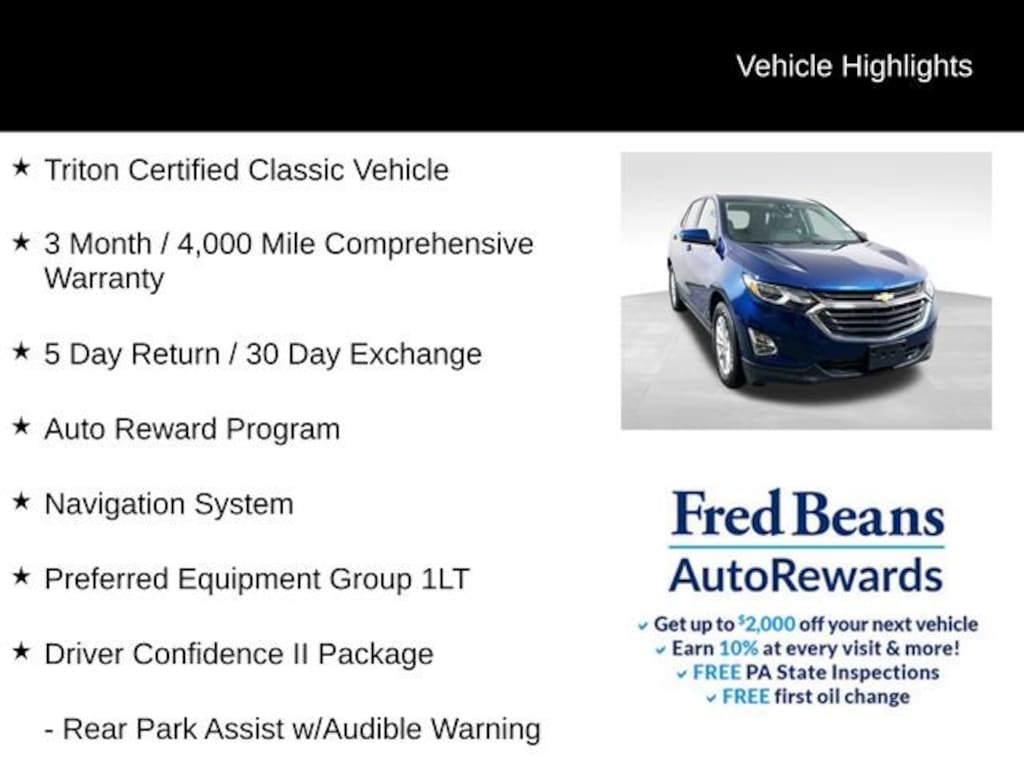 This Equinox LT is more than just a capable SUV it's a Triton Certified Classic Vehicle, meaning it has undergone a rigorous inspection and comes with a comprehensive warranty for your peace of mind. With its impressive 26 city / 31 highway MPG, this Equinox delivers exceptional fuel efficiency to keep you on the road longer.