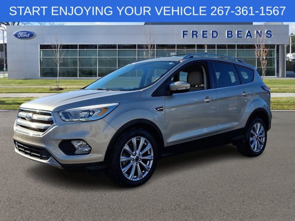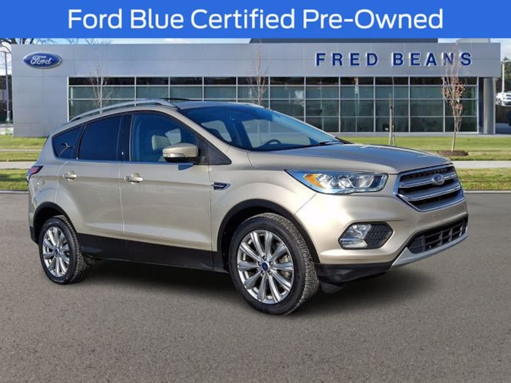 Recent Arrival! 2017 Ford Escape Titanium 1.5L EcoBoost 6-Speed Automatic 4D Sport Utility White Gold Metallic Local Trade, Great Service History, 3 Month / 4,000 Mile Comprehensive Warranty, Factory Certified Vehicle, Free First Oil Change, 5 Day Return / 30 Day Exchange, Auto Reward Program, Escape Titanium, 4D Sport Utility, 1.5L EcoBoost, 6-Speed Automatic, 4WD, White Gold Metallic, Medium Light Stone Leather, Equipment Group 300A. 22/28 City/Highway MPG