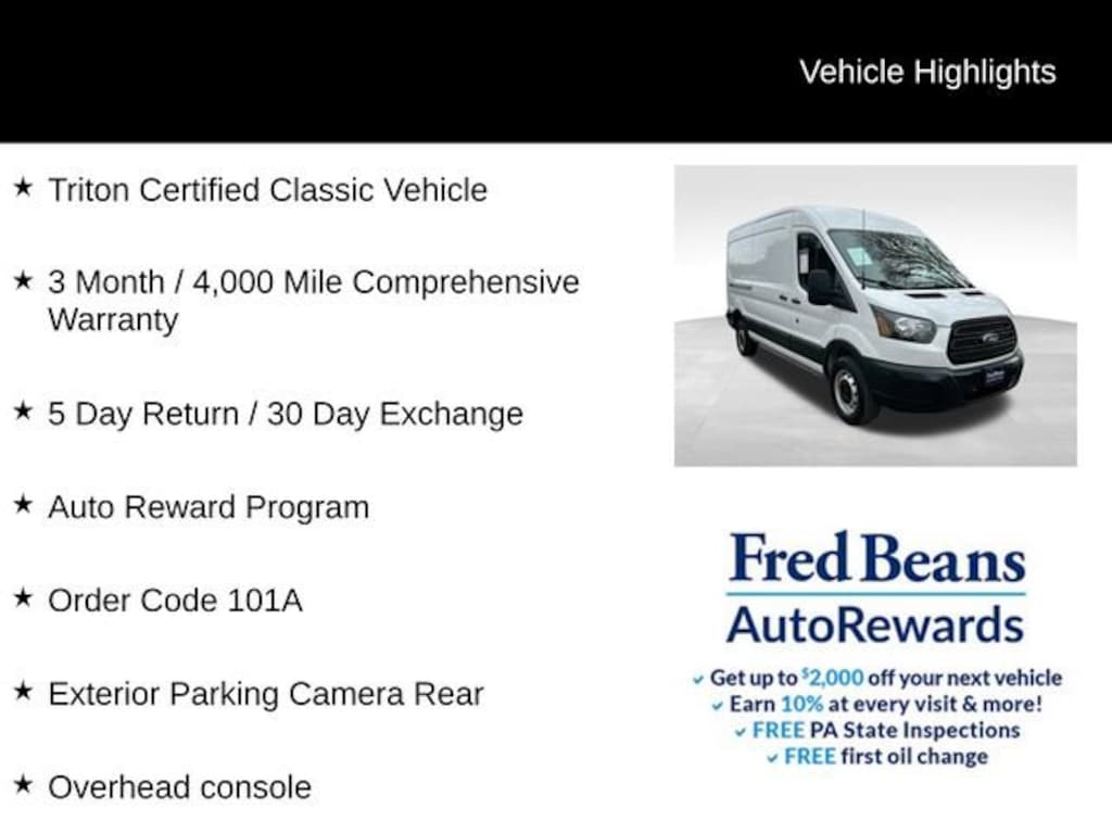 This 2019 Ford Transit-350 Base is a Triton Certified Classic Vehicle, meaning it has undergone a thorough inspection and comes with a comprehensive warranty for your peace of mind. With its impressive capabilities, thoughtful features, and certified quality, this van is the perfect choice for your transportation needs.