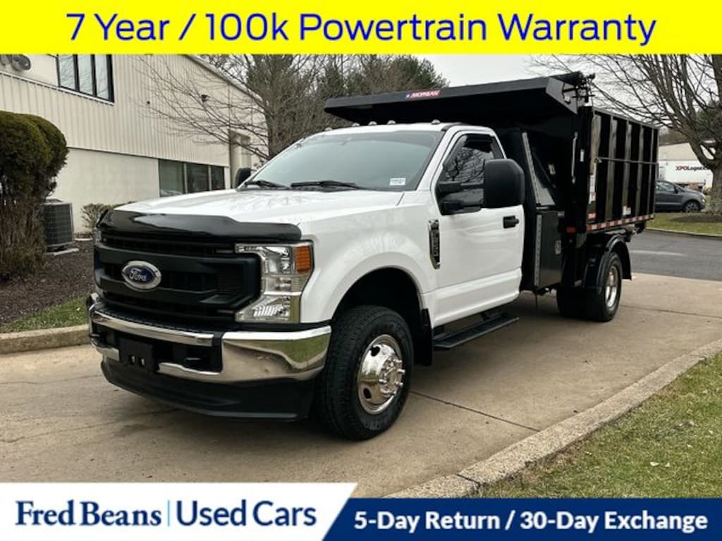 2021 Ford F-350SD XL DRW 6.2L V8 EFI SOHC 16V Flex Fuel 10-Speed Automatic 4WD 9 foot Morgan Landscape Dump with L-Pack Tool storage Oxford White Ford Gold Certified, 7 Year / 100k Powertrain Warranty, 12 Month / 12,000 Mile Comprehensive Warranty, Local Trade, 17" Argent Painted Steel Wheels, Advanced Security Pack, Air Conditioning, AM/FM Stereo w/MP3 Player, Dual rear wheels, Exterior Backup Alarm (Pre-Installed), GVWR: 14,000 lb Payload Package, HD Vinyl 40/20/40 Split Bench Seat, Manual Telescoping/Folding Trailer Tow Mirrors, MyKey, Order Code 640A, Platform Running Boards, Power Equipment Group, Power Front Side Windows, Power Locks, Remote Keyless Entry, Steering Wheel-Mounted Cruise Control, SYNC Communications & Entertainment System, Tilt steering wheel, Trailer Brake Controller, XL Value Package.