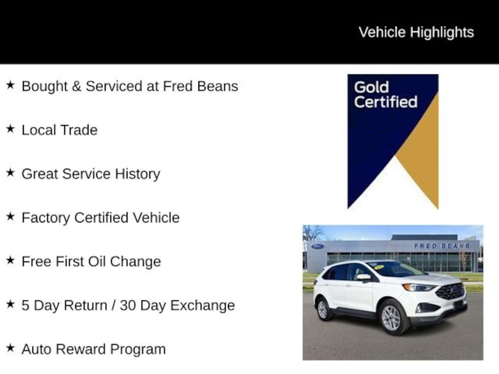 2022 Ford Edge SEL EcoBoost 2.0L I4 GTDi DOHC Turbocharged VCT 8-Speed Automatic 4D Sport Utility Oxford White Bought & Serviced at Fred Beans, Local Trade, Great Service History, Factory Certified Vehicle, Free First Oil Change, 5 Day Return / 30 Day Exchange, Auto Reward Program, Edge SEL, 4D Sport Utility, EcoBoost 2.0L I4 GTDi DOHC Turbocharged VCT, 8-Speed Automatic, AWD, Oxford White, Dune. 21/28 City/Highway MPG