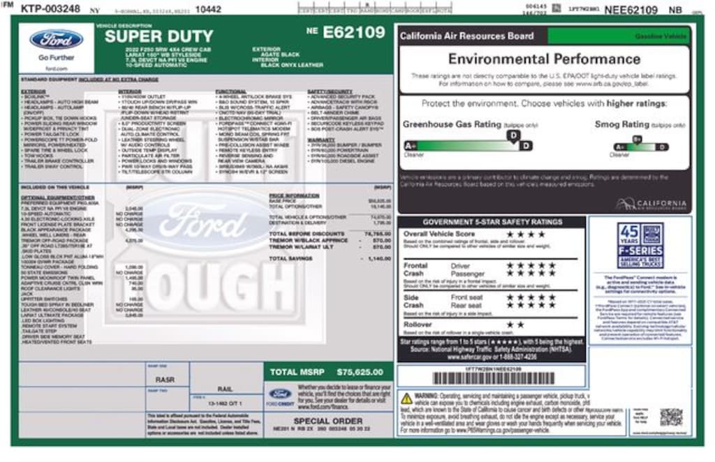Recent Arrival! 2022 Ford F-250SD Lariat 7.3L V8 PFI SOHC 16V Federal 385hp 10-Speed Automatic 4WD 4D Crew Cab Agate Black Metallic Local Trade, 6" Ebony Black Angular Running Boards, ABS brakes, Alloy wheels, AM/FM radio: SiriusXM with 360L, Ambient Lighting - Fixed Color, Automatic temperature control, Black Appearance Package, Black Out Surrounds LED Only Headlamps, Body-Color Front & Rear Bumpers, Body-Color Wheellip Moldings, Compass, Easy Entry®/Exit Memory Driver's Seat Feature, Ebony Black Painted Front Grille Bars, Ebony Black Painted Mirror Caps, Electronic Stability Control, Electronic-Locking w/4.30 Axle Ratio, Exterior Parking Camera Rear, Flow-Through Console, Front dual zone A/C, Front fog lights, Front Leather Seating Surfaces 40/Console/40, GVWR: 10,000 lb Payload Package, Hard Folding Tonneau Pickup Box Cover (Pre-Installed), Heated door mirrors, Illuminated entry, Intelligent Access w/Push-Button Start, Lane Departure Warning System, Lariat Ultimate Package, LED Box Lighting, Low tire pressure warning, Memory Power-Adjustable Pedals, Order Code 608A, Power Heated/Ventilated Driver Seat w/Memory, Power Heated/Ventilated Passenger Seat, Power Telescoping/Tilt Steering Wheel/Column, Power windows, PowerScope Trailer Tow Mirrors w/Memory, Radio: B&O Sound System by Bang & Olufsen, Rear Parking Sensors, Rear Wheel Well Liners (Pre-Installed), Remote keyless entry, Remote Start System, Remote Tailgate Release, SiriusXM Radio w/360L, SYNC 4 w/Enhanced Voice Recognition, Tailgate Step & Handle, Textured Matte Finish Off-Road Running Boards, Tough Bed Spray-In Bedliner, Traction control, Tremor Off-Road Decal, Tremor Off-Road Package, Twin Panel Power Moonroof, Upfitter Switches (6), Wheels: 18" Low-Gloss Black Painted Aluminum.