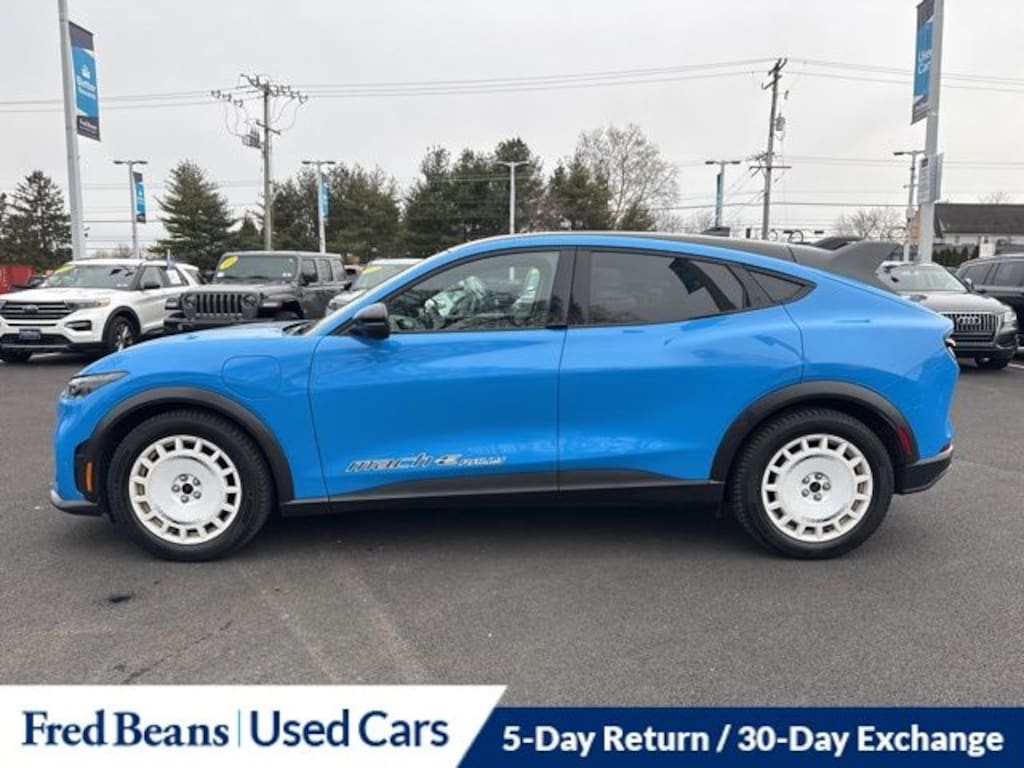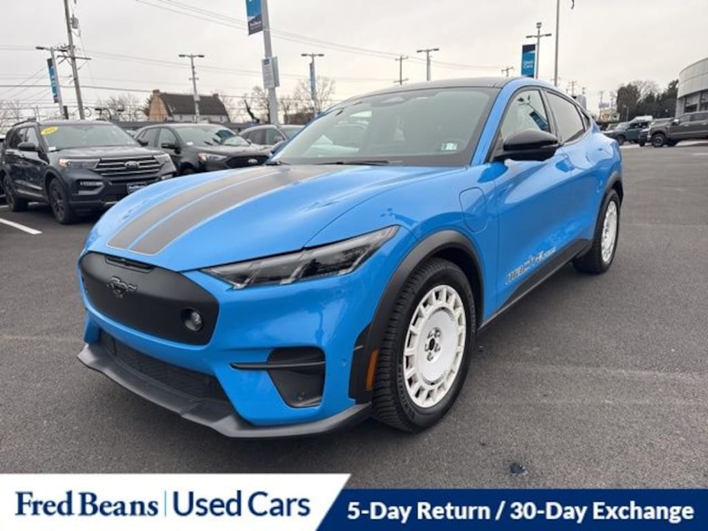Boasting an electric motor with an impressive 95 MPGe in the city and 85 MPGe on the highway, this Mustang Mach-E GT delivers exceptional efficiency without sacrificing power. The all-wheel-drive system and Rallycross-Tuned MagneRide Damping System ensure a thrilling and responsive driving experience, while the Mustang Mach-E Rally package adds a touch of sporty flair with exclusive door graphics, a unique front splitter, and more.