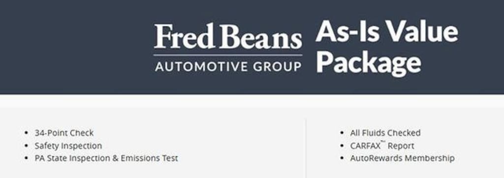 For better peace of mind all our used vehicles have a 127-point inspection and come with a 5-day return, 30-day exchange (As-Is vehicles are excluded). Our exclusive Auto Rewards Program provides better value with $50 Service Gift Certificate, Free Pa State Safety inspections, discounts for local merchants and more. Plus, you can earn up to $2000 towards your next vehicle just by servicing with Fred Beans! As Fred Beans always says, our used cars are better because our reputation depends on it.