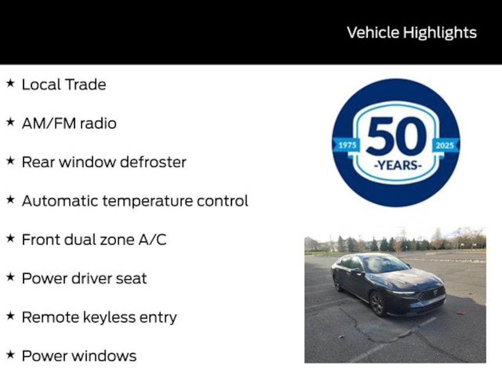 Recent Arrival! 2024 Honda Accord EX 1.5T I4 DOHC 16V Turbocharged VTEC CVT FWD 4D Sedan Crystal Black Pearl Local Trade, Alloy wheels, AM/FM radio, Apple CarPlay/Android Auto, Automatic temperature control, Exterior Parking Camera Rear, Fabric Seat Trim, Front Bucket Seats, Front dual zone A/C, Power door mirrors, Power driver seat, Power windows, Rear window defroster, Remote keyless entry, Speed control, Tilt steering wheel. 29/37 City/Highway MPG