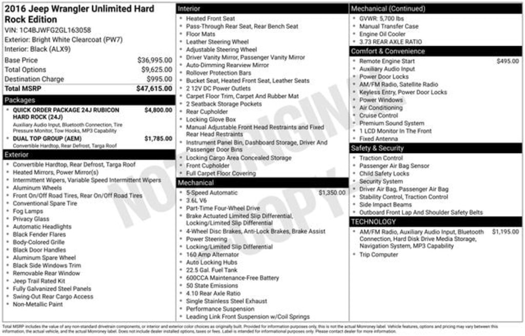 Designed to conquer the toughest terrain, this 2016 Jeep Wrangler Unlimited Rubicon is the ultimate adventure vehicle. Experience the unparalleled capability, versatility, and style that only a Jeep can provide.