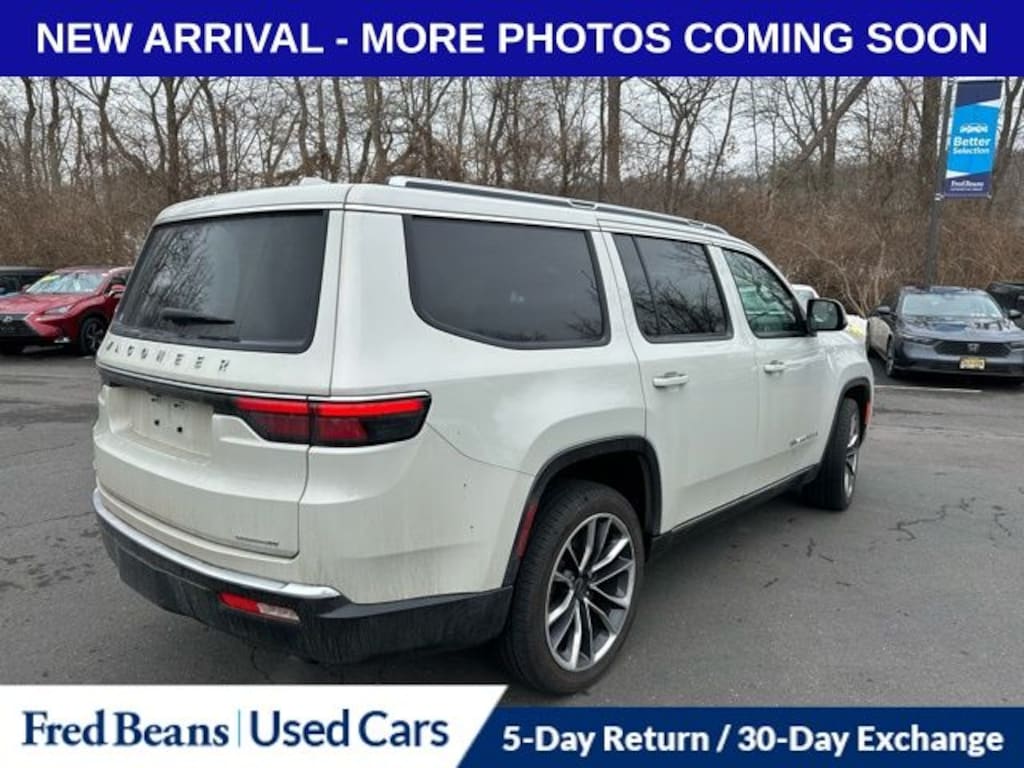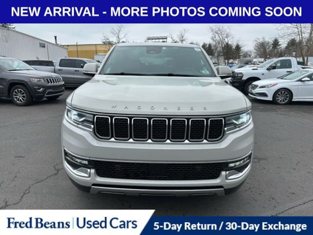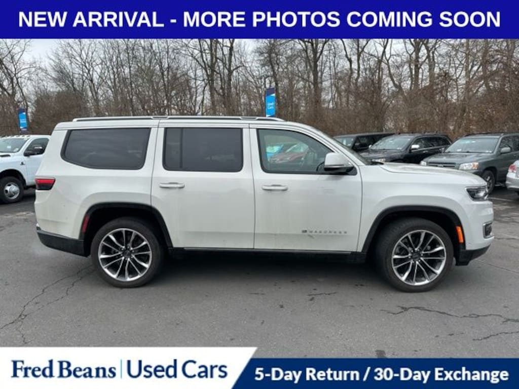 Recent Arrival! 2022 Jeep Wagoneer Series III 5.7L V8 8-Speed Automatic 4WD 4D Sport Utility Luxury White Pearlcoat Local Trade, Great Service History, 19 Speaker McIntosh Audio System, 3 Panel Sunroof, 7-Passenger Seating, Adjustable Roof Rail Crossbars, Cargo Cover, Flexible Seating Group, Floor Console w/Cupholder, Heated front seats, Heated rear seats, Luxury Front & Rear Floor Mats, Navigation System, Power Deployable Running Boards, Power Liftgate, Power Tip/Slide Recline 2nd Row Buckets, Premium Group I (DISC), Quick Order Package 22N, Reversible Carpet/Vinyl Cargo Mat, Ventilated front seats.