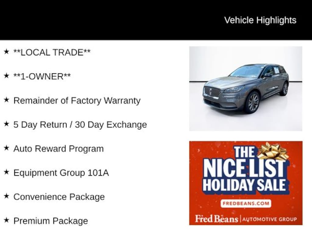 **LOCAL TRADE**, **1-OWNER**, Remainder of Factory Warranty, 5 Day Return / 30 Day Exchange, Auto Reward Program, 19" Premium Painted Aluminum Wheels, 60/40 EasyFold Rear Seat w/Power Seatback Release, Ambient Lighting, Convenience Package, Elements Package, Equipment Group 101A, Front dual zone A/C, Heated Rear Seat, Heated Steering Wheel, Heated/Ventilated Driver & Front Passenger Seats, Memory seat, Panoramic Vista Roof w/Power Shade, Premium Leather-Trimmed Comfort Seats, Premium Package, Radio: Lincoln Premium Audio System w/MP3, Rain Sensing Wipers, Rear Parking Sensors, SiriusXM Radio, SYNC 3 Communications & Entertainment System, Universal Garage Door Opener, Ventura Leather-Wrapped Steering Wheel, Voice-Activated Touchscreen Navigation System, Windshield Wiper De-Icer, 10 Speakers, 18" Bright Machined Aluminum Wheels, 3.81 Axle Ratio, 4-Wheel Disc Brakes, ABS brakes, Air Conditioning, Alloy wheels, AM/FM radio: SiriusXM, Auto High-beam Headlights, Auto-dimming Rear-View mirror, Automatic temperature control, Brake assist, Bumpers: body-color, Compass, Delay-off headlights, Driver door bin, Driver vanity mirror, Dual front impact airbags, Dual front side impact airbags, Electronic Stability Control, Emergency communication system: 911 Assist, Four wheel independent suspension, Front anti-roll bar, Front Bucket Seats, Front Center Armrest, Front reading lights, Fully automatic headlights, Heated door mirrors, Heated front seats, Illuminated entry, Knee airbag, Low tire pressure warning, Micro-Perforated Lincoln Soft Touch Seats, Occupant sensing airbag, Outside temperature display, Overhead airbag, Overhead console, Panic alarm, Passenger door bin, Passenger vanity mirror, Power door mirrors, Power driver seat, Power Liftgate, Power passenger seat, Power steering, Power windows, Radio data system, Rear anti-roll bar, Rear reading lights, Rear seat center armrest, Rear window defroster, Rear window wiper, Remote keyless entry, Roof rack: rails only, Security system, Speed control, Speed-sensing steering, Speed-Sensitive Wipers, Split folding rear seat, Spoiler, Steering wheel mounted A/C controls, Steering wheel mounted audio controls, Tachometer, Telescoping steering wheel, Tilt steering wheel, Traction control, Trip computer, Variably intermittent wipers, 19" Premium Painted Aluminum Wheels, 60/40 EasyFold Rear Seat w/Power Seatback Release, Ambient Lighting, Convenience Package, Elements Package, Equipment Group 101A, Front dual zone A/C, Heated Rear Seat, Heated Steering Wheel, Heated/Ventilated Driver & Front Passenger Seats, Memory seat, Panoramic Vista Roof w/Power Shade, Premium Leather-Trimmed Comfort Seats, Premium Package, Radio: Lincoln Premium Audio System w/MP3, Rain Sensing Wipers, Rear Parking Sensors, SiriusXM Radio, SYNC 3 Communications & Entertainment System, Universal Garage Door Opener, Ventura Leather-Wrapped Steering Wheel, Voice-Activated Touchscreen Navigation System, Windshield Wiper De-Icer.