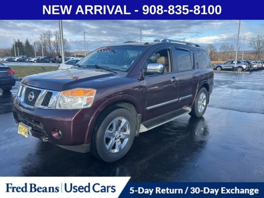 CALL NOW 908-835-8100, BIG THAW SALES EVENT, YES! WE HAVE TRUCKS!, BEST TIME TO BUY IS NOW, Auto Reward Program, NAVIGATION, SUNROOF/MOONROOF, LOW MILES, HEATED SEATS, CALL NOW!!! 908-835-8100, Free First Oil Change, SOLD AS-IS, 4WD, Exterior Parking Camera Rear, Front fog lights, Fully automatic headlights, Navigation System, Power Liftgate, Power moonroof. 2013 Nissan Armada Platinum 5.6L 8-Cylinder SMPI DOHC 5-Speed Automatic with Overdrive 4WD 4D Sport Utility Midnight Garnet