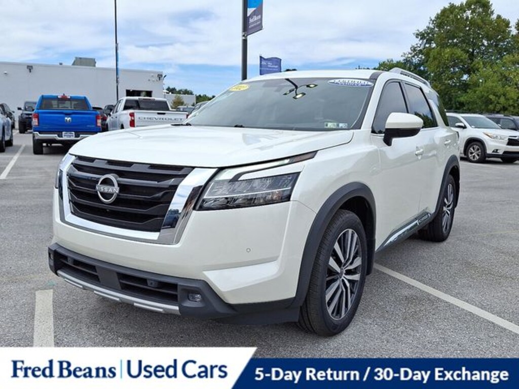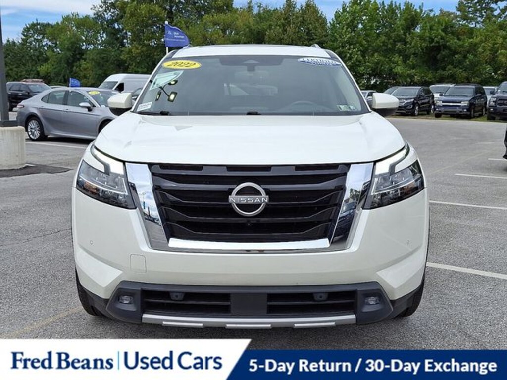 2022 Nissan Pathfinder Platinum V6 9-Speed Automatic 4WD 4D Sport Utility Pearl White Tricoat Local Trade, Great Service History, 3 Month / 4,000 Mile Comprehensive Warranty, Free First Oil Change, 5 Day Return / 30 Day Exchange, 4WD, Bose Premium Audio System, Brake assist, Electronic Stability Control, Exterior Parking Camera Rear, Heads-Up Display, Heated front seats, Heated rear seats, Memory seat, Navigation system: NissanConnect Navigation, Power driver seat, Power Liftgate, Power moonroof, Steering wheel memory, Ventilated front seats.
