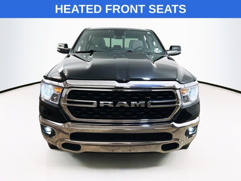 2nd Row In Floor Storage Bins, 3 Rear Seat Head Restraints, 4 Way Front Headrests, 4-Wheel Disc Brakes, 4G LTE Wi-Fi Hot Spot, 6 Speakers, 8.4" Touchscreen Display, ABS brakes, Air Conditioning, AM/FM radio, Apple CarPlay, Auto-Dimming Exterior Driver Mirror, Auto-Dimming Rear-View Mirror, Bed Utility Group, Big Horn Badge, Big Horn Level 1 Equipment Group, Black Exterior Mirrors, Black Premium Power Mirrors, Bluetooth Handsfree Phone & Audio, Brake assist, Class IV Receiver Hitch, Cloth Bench Seat, Compass, Connectivity - US/Canada, Convex Wide-Angle Exterior Mirror Insert, Delay-off headlights, Dual front impact airbags, Dual front side impact airbags, Electric Shift-On-Demand Transfer Case, Electronic Stability Control, Emergency communication system: SiriusXM Guardian, Exterior Mirrors Courtesy Lamps, Exterior Mirrors w/Heating Element, Exterior Mirrors w/Supplemental Signals, For Details, Visit DriveUconnect.com, For More Info, Call 800-643-2112, Front anti-roll bar, Front Fog Lamps, Front wheel independent suspension, Fully automatic headlights, Glove Box Lamp, Google Android Auto, GPS Antenna Input, Heated Front Seats, Heated Steering Wheel, Illuminated entry, Integrated Center Stack Radio, Integrated Voice Command w/Bluetooth, Leather steering wheel, Low tire pressure warning, MOPAR 4 Adjustable Cargo Tie-Down Hooks, MOPAR Deployable Bed Step, MOPAR Front & Rear Rubber Floor Mats, MOPAR Spray In Bedliner, Occupant sensing airbag, Outside temperature display, Overhead airbag, Overhead console, Panic alarm, ParkView Rear Back-Up Camera, Passenger Sun Visor w/Illuminated Mirror, Passenger vanity mirror, Pick-Up Box Lighting, Power door mirrors, Power-Folding Mirrors, Quick Order Package 23Z Big Horn, Radio data system, Radio: Uconnect 3 w/5" Display, Radio: Uconnect 5 W w/8.4" Display, RAM Grille Badge - Chrome, Rear anti-roll bar, Rear Dome w/On/Off Switch Lamp, Rear Power Sliding Window, Rear seat center armrest, Rear step bumper, Rear Wheelhouse Liners, Rear Window Defroster, SiriusXM Satellite Radio, Split folding rear seat, Tachometer, Telescoping steering wheel, Tilt steering wheel, Trip computer, USB Host Flip, Voltmeter.