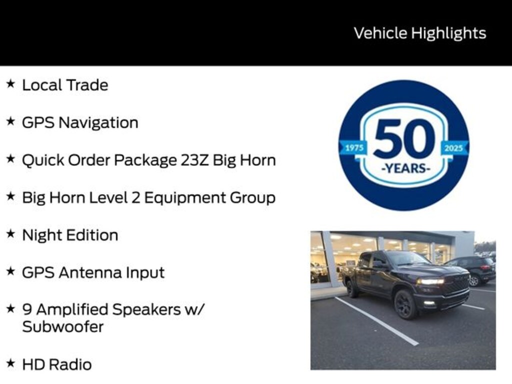 Experience the perfect balance of utility and technology in this 2025 Ram 1500 Big Horn/Lone Star. With its impressive capabilities, premium features, and striking appearance, this truck is the ultimate choice for the discerning driver. Visit our showroom today and let us demonstrate why this Ram 1500 is the perfect fit for your lifestyle.
