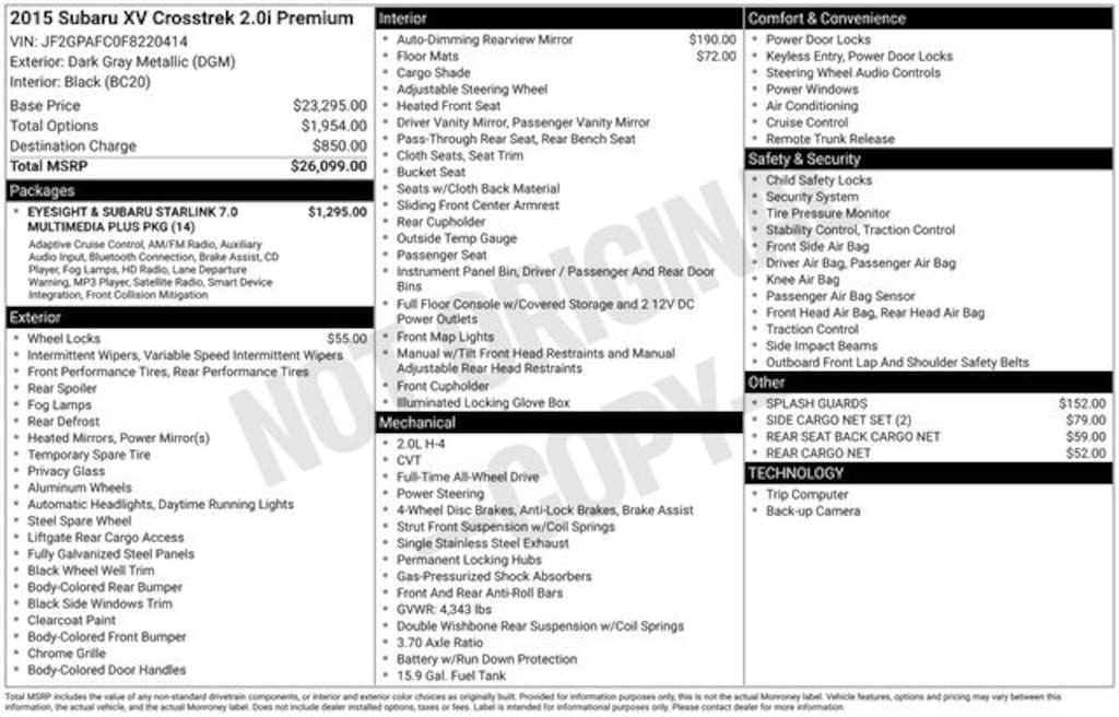 We invite you to experience the Crosstrek's exceptional performance and features for yourself. Visit our showroom today and let our knowledgeable team guide you through a test drive. We're confident you'll be impressed by the Crosstrek's versatility and the exceptional value it offers. Take the first step towards owning this remarkable vehicle and schedule your appointment now.