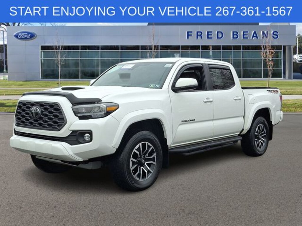 Recent Arrival! 2022 Toyota Tacoma TRD Sport V6 3.5L V6 PDI DOHC 24V LEV3-ULEV70 278hp 6-Speed 4D Double Cab White Local Trade, Great Service History, 3 Month / 4,000 Mile Comprehensive Warranty, Free First Oil Change, 5 Day Return / 30 Day Exchange, Auto Reward Program, Tacoma TRD Sport V6, 4D Double Cab, 3.5L V6 PDI DOHC 24V LEV3-ULEV70 278hp, 6-Speed, 4WD, White, Black w/Fabric Seat Trim (FC), ABS brakes, Alloy wheels, Electronic Stability Control, Front dual zone A/C, Heated door mirrors, Illuminated entry, Low tire pressure warning, Remote keyless entry, Traction control.