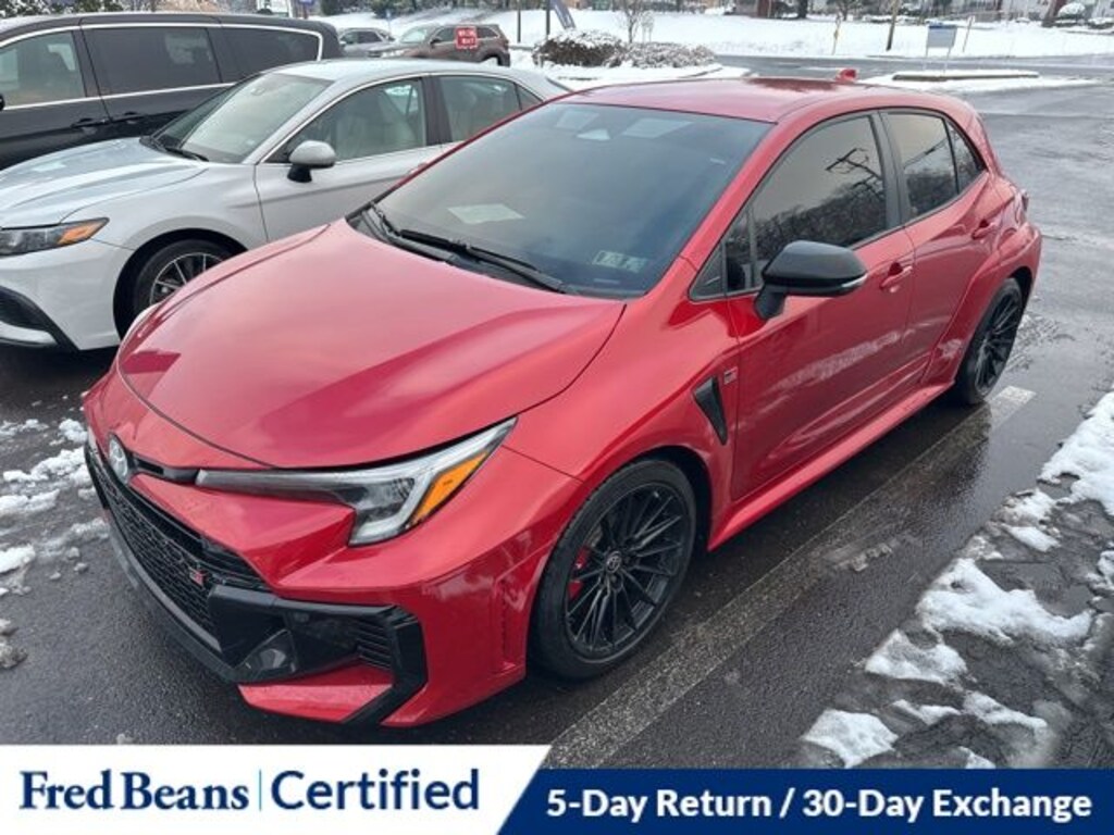 Recent Arrival! 2025 Toyota GR Corolla Premium Premium 1.6L I3 PDI Turbocharged DOHC 12V LEV3-ULEV70 300hp 6-Speed Manual AWD 5D Hatchback Red Local Trade, Great Service History, Remainder of Factory Warranty, 5 Day Return / 30 Day Exchange, Auto Rewards Program, Alloy wheels, Apple CarPlay/Android Auto, Auto High-beam Headlights, Automatic temperature control, Brin Naub & Synthetic Leather Seat Trim, Exterior Parking Camera Rear, Heated front seats, Heated steering wheel, Illuminated entry, Leather Shift Knob, Leather steering wheel, Navigation system: Drive Connect Cloud Navigation (1-year trial subscription), Power door mirrors, Premium Package, Radio: Toyota Audio Multimedia w/8 JBL Speakers, Turn signal indicator mirrors.