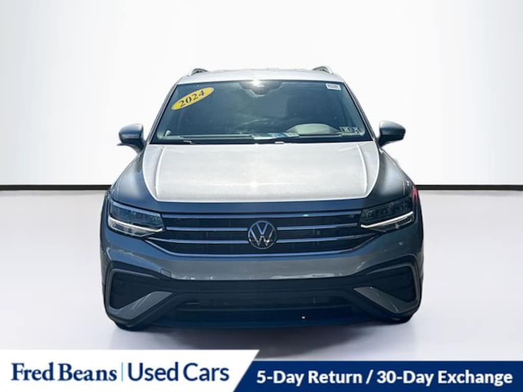 CARFAX One-Owner. Clean CARFAX. 22/29 City/Highway MPG 2024 Volkswagen Tiguan 2.0T SE 2.0L TSI DOHC 8-Speed Automatic with Tiptronic AWD 4D Sport Utility Pyrite Silver Metallic For better peace of mind all our used vehicles have a 127-point inspection and come with a 5-day return, 30-day exchange (As-Is vehicles are excluded). Our exclusive Auto Rewards Program provides better value with Free First Oil change, Free Pa State Safety inspections, discounts for local merchants and more. Plus, you can earn up to $2000 towards your next vehicle just by servicing with Fred Beans! As Fred Beans always says, our used cars are better because our reputation depends on it.