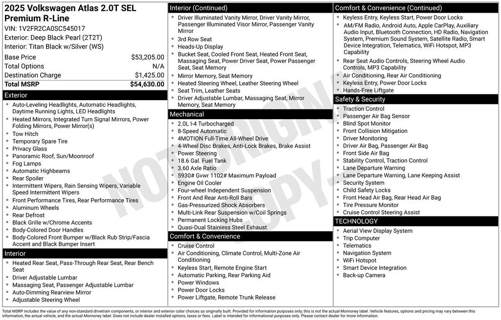 Recent Arrival! 2025 Volkswagen Atlas 2.0T SEL Premium R-Line 2.0L TSI 8-Speed Automatic AWD 4D Sport Utility Deep Black Great Service History, Remainder of Factory Warranty, Factory Certified Vehicle, Auto Reward Program.